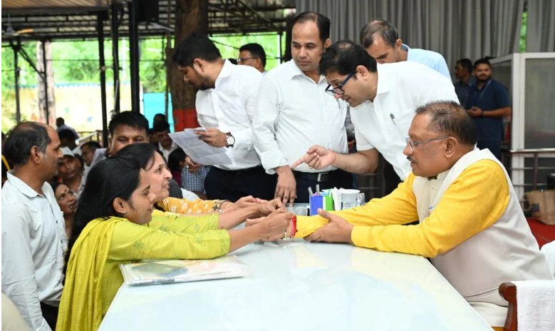 रायपुर ( शिखर दर्शन ) // आज मुख्यमंत्री जनदर्शन में मुख्यमंत्री विष्णु देव साय से मिलने दो बहनें आईं। राखी के त्यौहार से पहले उन्होंने मुख्यमंत्री को राखी बांधने की इच्छा जताई। बहनों में से एक, रिशी अग्रवाल, बिलासपुर से और दूसरी, सिद्धिका गोस्वामी, बेमेतरा से आईं।
