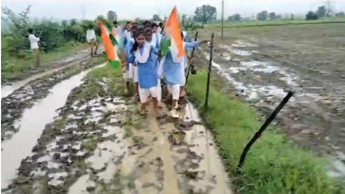 स्वतंत्रता दिवस पर दलदल भरी सड़क से गुजरते बच्चों का वायरल वीडियो: सागर जिले में स्कूल की सड़क की दयनीय स्थिति की खुली पोल