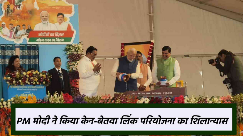 प्रधानमंत्री नरेंद्र मोदी ने खजुराहो में केन-बेतवा नदी जोड़ो राष्ट्रीय परियोजना का शिलान्यास किया, जो देश की पहली ऐसी परियोजना है। इस अवसर पर अटल बिहारी वाजपेयी की 100वीं जयंती पर 100 रुपए का स्मारक सिक्का और डाक टिकट भी जारी किया गया। मुख्यमंत्री डॉ. मोहन यादव ने पीएम मोदी की तुलना भागीरथ से करते हुए कहा कि यह परियोजना बुंदेलखंड के लिए समृद्धि के द्वार खोलेगी।