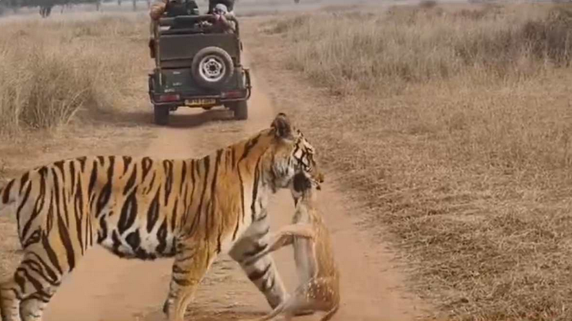 कोहरे में भी सटीक निशाना: बाघ का शिकार देख पर्यटकों के छूटे पसीने, कांपते हाथों से किया वीडियो शूट