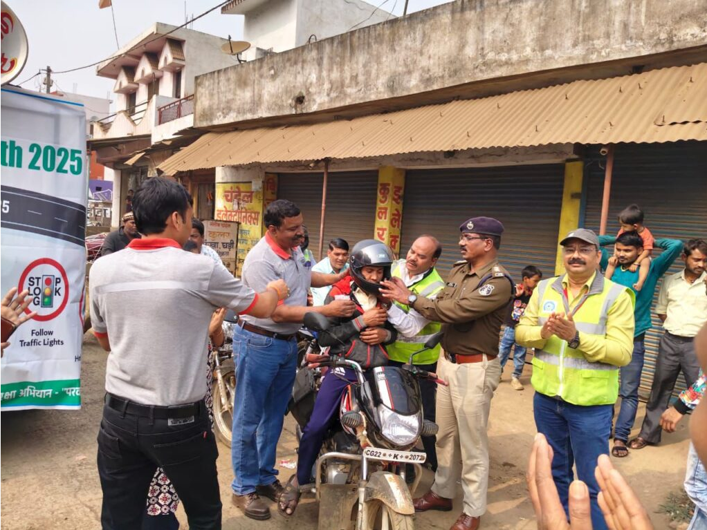 35वां सड़क सुरक्षा माह 2025: यातायात जागरूकता कार्यक्रम में हेलमेट वितरण और नियमों पर दिया गया जोर