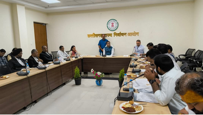 रायपुर (शिखर दर्शन) // राज्य निर्वाचन आयुक्त श्री अजय सिंह की अध्यक्षता में आगामी स्थानीय निकाय और त्रिस्तरीय पंचायत चुनावों की तैयारी को लेकर राजनीतिक दलों के प्रतिनिधियों के साथ एक महत्वपूर्ण बैठक आयोजित की गई। इस बैठक का मुख्य उद्देश्य चुनाव प्रक्रियाओं के बारे में चर्चा और समन्वय स्थापित करना था, ताकि चुनाव निष्पक्ष, पारदर्शी और प्रभावी रूप से संपन्न हो सकें।
