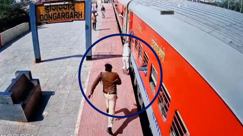डोंगरगढ़ (शिखर दर्शन) // छत्तीसगढ़ के डोंगरगढ़ रेलवे स्टेशन पर रेलवे सुरक्षा बल (RPF) के जवान की सतर्कता और बहादुरी से एक बड़ा हादसा टल गया। एक यात्री चलती ट्रेन में चढ़ने के दौरान संतुलन खो बैठा और प्लेटफॉर्म व ट्रेन के बीच गिरने ही वाला था, लेकिन ड्यूटी पर तैनात प्रधान आरक्षक प्रशांत दलाई ने फुर्ती दिखाते हुए उसे सुरक्षित बाहर खींच लिया। यह पूरी घटना स्टेशन के सीसीटीवी कैमरे में कैद हो गई, जिसका वीडियो सोशल मीडिया पर वायरल हो रहा है।