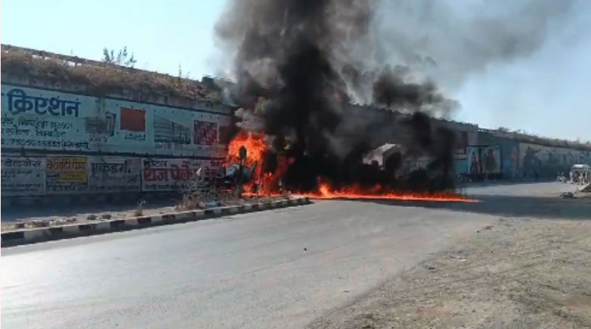 यह हादसा रविवार को नीमच-चित्तौड़गढ़ हाईवे पर हुआ, जब फर्श पत्थर से लदे ट्रेलर में अचानक आग भड़क उठी। देखते ही देखते आग ने विकराल रूप ले लिया, और ड्राइवर उसकी चपेट में आ गया। आग इतनी भीषण थी कि दो किलोमीटर दूर से लपटें नजर आ रही थीं।