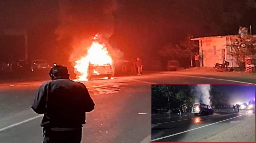 महाकुंभ स्नान कर लौट रहे श्रद्धालुओं की कार में लगी आग, लोगों ने देवदूत बनकर बचाई जान