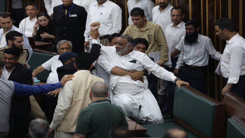स्पीकर के पोडियम की ओर बढ़ते देख स्पीकर एडवोकेट अब्दुल रहीम राथर ने मार्शलों को उन्हें बाहर निकालने का आदेश दिया। इस दौरान पीपुल्स कॉन्फ्रेंस के नेता सज्जाद लोन ने उन्हें रोकने की कोशिश की, लेकिन उन्हें भी सदन से बाहर कर दिया गया। मार्शल द्वारा बाहर निकाले जाने के दौरान विधायक लोन ने तीखी प्रतिक्रिया देते हुए कहा, “विडंबना है कि NC के विधायक अपनी ही पार्टी के स्पीकर के खिलाफ प्रदर्शन कर रहे हैं। यह जनता को गुमराह करने की साज़िश है।”
