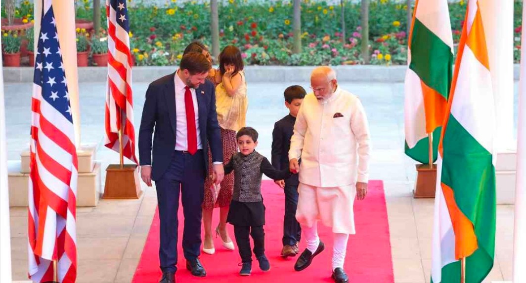 भारतीय मूल की पत्नी संग भारत पहुंचे अमेरिकी उपराष्ट्रपति जेडी वेंसपीएम मोदी से मुलाकात, व्यापार और वैश्विक मुद्दों पर हो रही अहम बातचीत