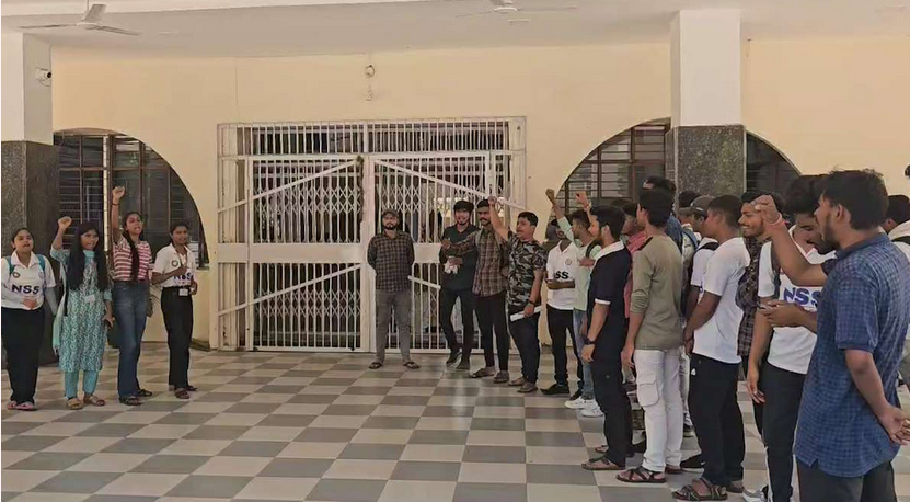 विश्वविद्यालय प्रशासनिक भवन के सामने जुटे एनएसएस छात्र, प्रोफेसर के समर्थन में की नारेबाजी, गिरफ्तारी को बताया अन्यायपूर्ण