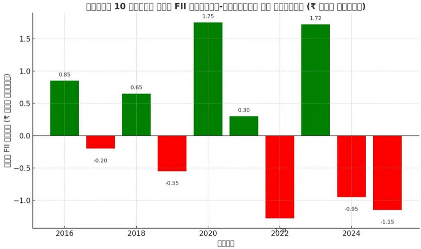 - FII फ्लो साल-दर-साल अस्थिर