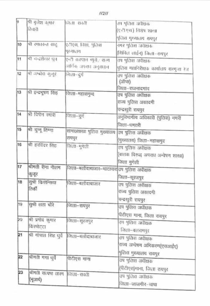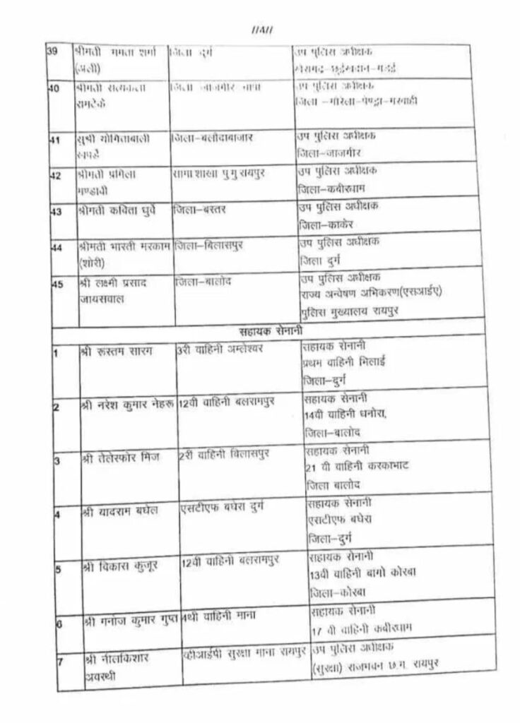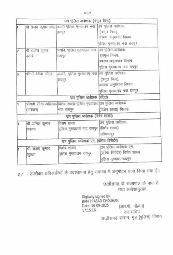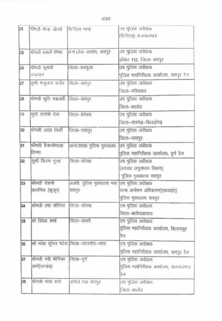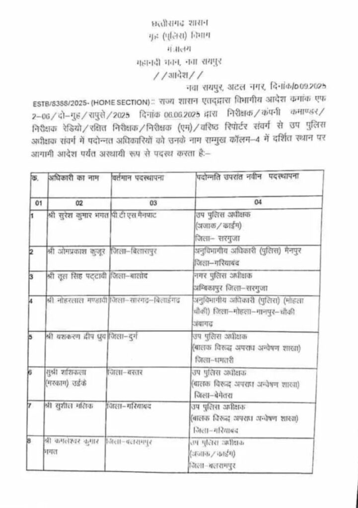 छत्तीसगढ़ के पुलिस महकमे में बड़ा फेरबदल: 45 डीएसपी समेत 58 अधिकारियों के तबादले, पदोन्नत अफसरों को नई जिम्मेदारी