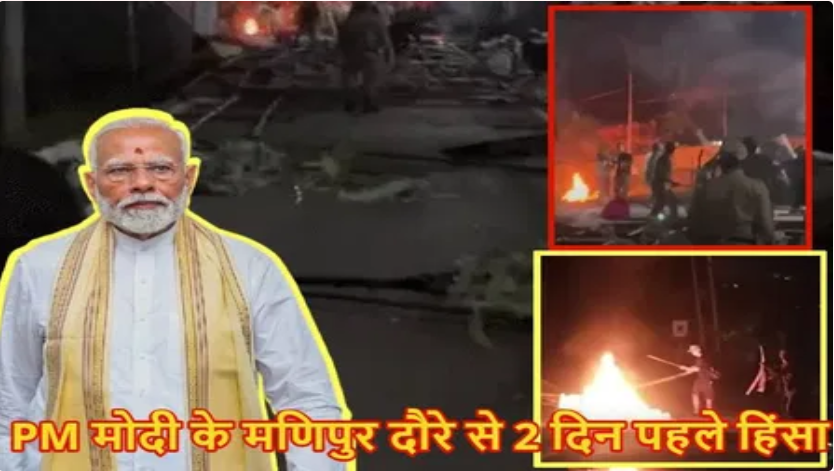 इंफाल / चुराचांदपुर ( शिखर दर्शन ) // प्रधानमंत्री नरेंद्र मोदी के मणिपुर दौरे से ठीक दो दिन पहले राज्य में तनाव फिर बढ़ गया। गुरुवार देर रात चुराचांदपुर के पीसोनमुन गांव में उपद्रवियों ने पीएम मोदी के स्वागत में लगाए गए पोस्टर-बैनर और बैरिकेडिंग को आग के हवाले कर दिया। चुराचांदपुर थाने से महज 5 किलोमीटर दूर हुई इस घटना पर पुलिस ने लाठीचार्ज कर उपद्रवियों को खदेड़ा। हालांकि अब तक घायलों की संख्या स्पष्ट नहीं है।