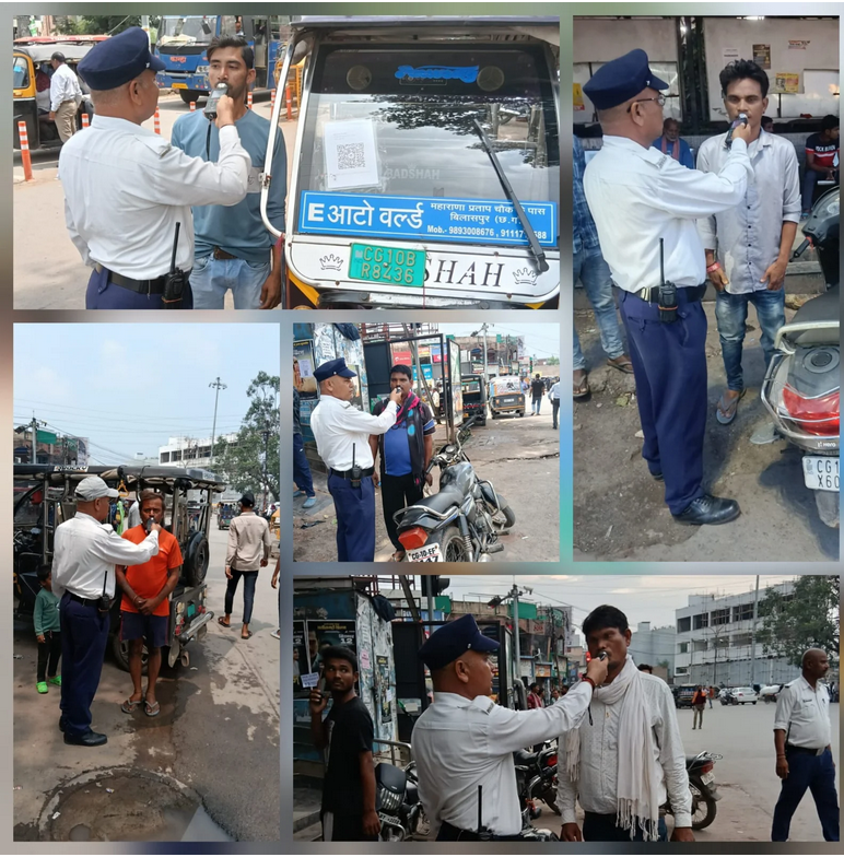 यातायात पुलिस ने सड़क पर ब्रीथ एनालाइजर एल्कोमीटर मशीन के माध्यम से चालकों की सांस में शराब की मात्रा मापना शुरू किया है। कुछ ही क्षणों में मशीन यह बता देती है कि चालक नशे में है या नहीं। शराब पीकर वाहन चलाने वाले चालकों के खिलाफ तत्काल कार्रवाई करते हुए वाहन जप्त कर न्यायालय में पेश किया जा रहा है।