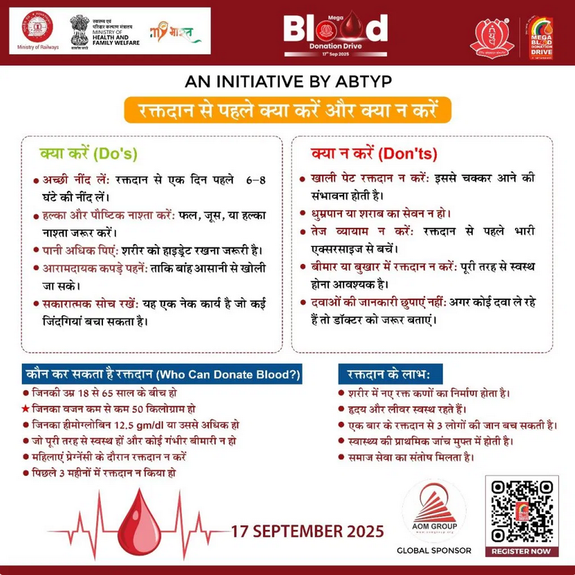 यह मेगा रक्तदान अभियान समाज में मानवता और सेवा का संदेश फैलाने के लिए आयोजित किया जा रहा है।
