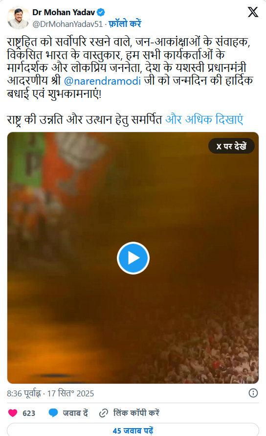 पीएम मोदी के जन्मदिन पर मुख्यमंत्री डॉ. मोहन यादव और भाजपा प्रदेशाध्यक्ष ने दी शुभकामनाएं