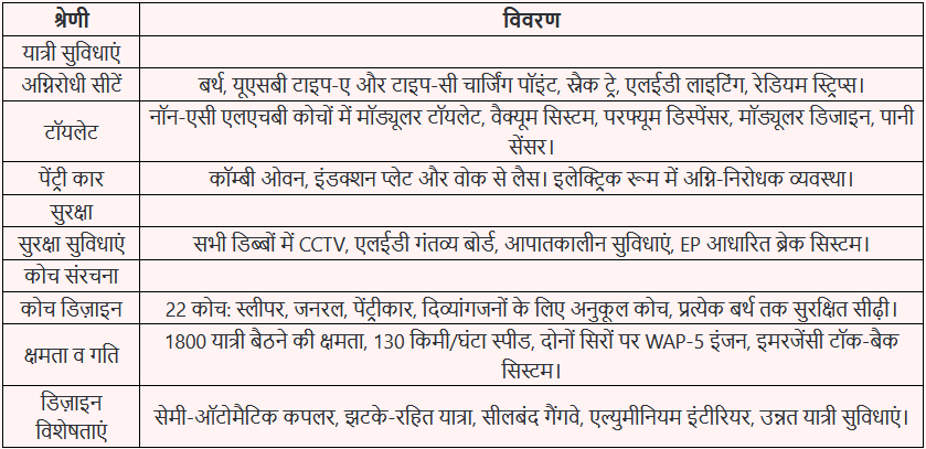 रेल मंत्रालय के अधिकारियों के अनुसार, यह ट्रेन आम यात्री को किफायती किराए में आधुनिक सुविधाओं से लैस यात्रा का अनुभव प्रदान करेगी। 5 अक्टूबर से यह ट्रेन नियमित सेवा में उपलब्ध होगी और बुकिंग भी शुरू हो गई है।