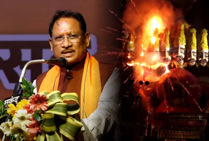 डब्लूआरएस मैदान में 101 फीट ऊंचे रावण का दहन, CM साय ने बुराइयों को त्यागकर समाज और राष्ट्र के कल्याण का लिया संदेश