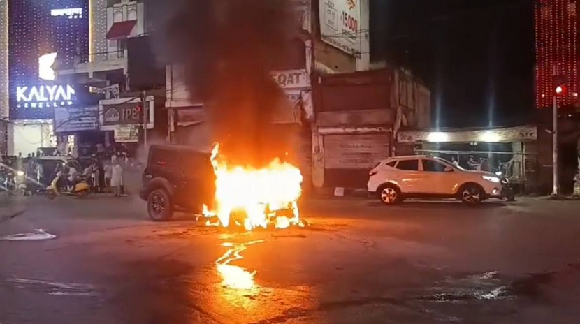 चलती थार में लगी भीषण आग: युवकों ने कूदकर बचाई जान, वाहन जलकर खाक