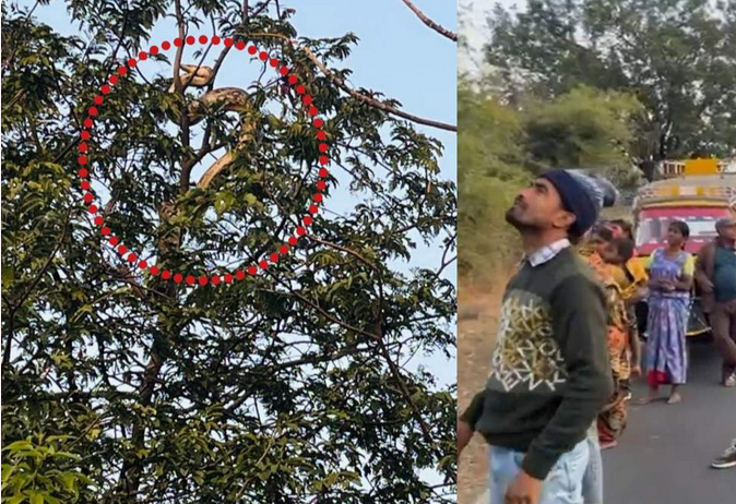 अजगर के दिखाई देने की खबर फैलते ही आसपास के ग्रामीण बड़ी संख्या में मौके पर इकट्ठा हो गए। वहीं, सड़क से गुजर रहे लोग भी पेड़ पर चढ़े अजगर को देखकर रुके और अपने मोबाइल से वीडियो और तस्वीरें बनाने लगे। इस दौरान कुछ समय के लिए सड़क पर आवाजाही प्रभावित होती नजर आई। सोशल मीडिया पर यह वीडियो तेजी से वायरल हो रहा है।