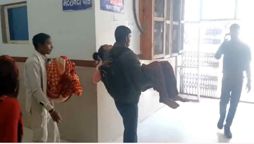 स्ट्रेचर और बिस्तर नहीं मिलने से महिलाएं हुईं परेशान, परिजनों ने गोद में उठाकर अस्पताल से बाहर पहुंचाया