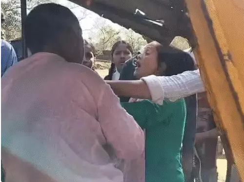 बीच सड़क पर महिला द्वारा ऑटो-ड्राइवर की पिटाई…