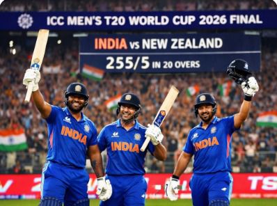 अहमदाबाद। गुजरात के ऐतिहासिक Narendra Modi Stadium में खेले गए रोमांचक फाइनल मुकाबले में India national cricket team ने शानदार प्रदर्शन करते हुए New Zealand national cricket team को 96 रन से हराकर ICC Men’s T20 World Cup 2026 का खिताब अपने नाम कर लिया। भारतीय टीम की इस ऐतिहासिक जीत के साथ ही स्टेडियम में मौजूद हजारों दर्शकों की खुशी देखते ही बन रही थी, वहीं अहमदाबाद सहित पूरे भारत में जश्न का माहौल बन गया।