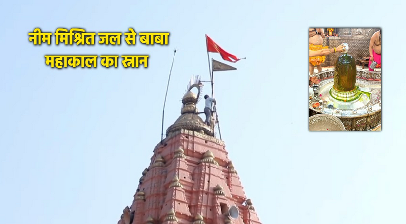 नव संवत्सर पर महाकाल मंदिर में विशेष अभिषेक: नीम जल से की गई पूजा, स्वस्थ जीवन की कामना के साथ लहराया ब्रह्मध्वज