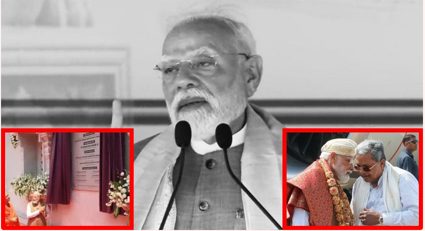 कर्नाटक दौरे पर पीएम मोदी: सिद्धारमैया ने किया गर्मजोशी से स्वागत, गुरु भैरवैय्या मंदिर का उद्घाटन