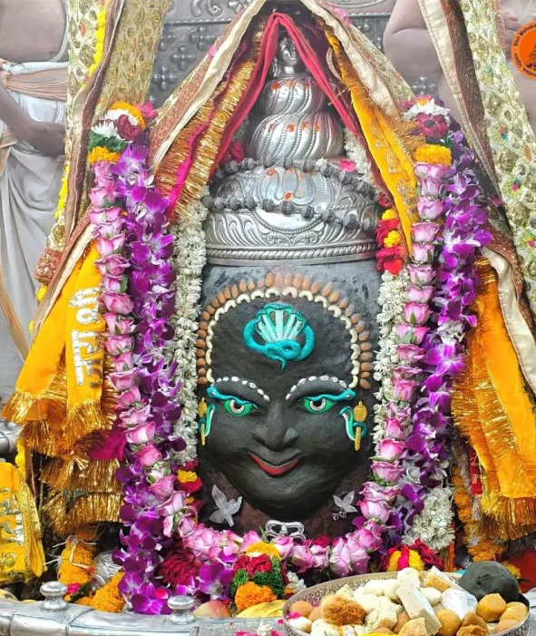 उज्जैन ( शिखर दर्शन ) // विश्व प्रसिद्ध श्री महाकालेश्वर मंदिर में वैशाख माह के शुक्ल पक्ष की तृतीया तिथि, रविवार तड़के 4 बजे मंदिर के कपाट श्रद्धालुओं के लिए खोले गए, जहां विशेष भस्म आरती के साथ भगवान महाकाल का भव्य और दिव्य श्रृंगार किया गया। अक्षय तृतीया के पावन अवसर पर बाबा महाकाल के मस्तक पर शेषनाग स्वरूप का अद्भुत अलंकरण देखने को मिला, जिसने श्रद्धालुओं को भावविभोर कर दिया।