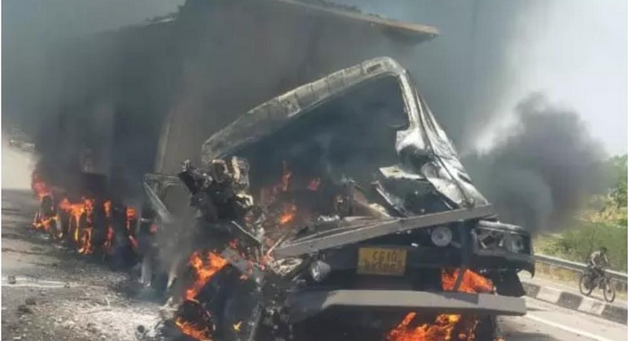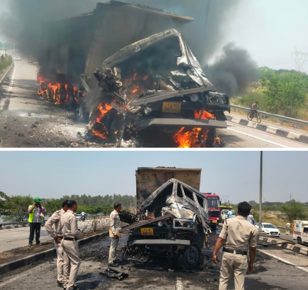 - टक्कर के बाद वाहन में लगी भीषण आग