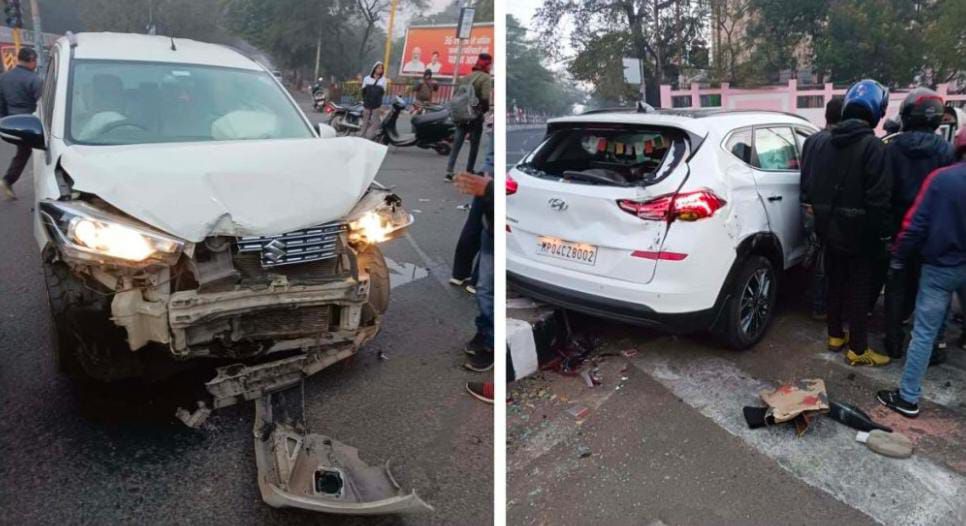 यह घटना व्यापम चौराहे की है , जहां पर एक कार सामने से आ रही थी तो दूसरी कार बोर्ड ऑफिस की तरफ जा रही थी । तभी तेज रफ्तार होने के कारण आपस में टकरा गई । रफ्तार इतनी तेज थी कि दोनों गाड़ी बुरी तरह से क्षतिग्रस्त हो गई है । एयरबैग खुल जाने के कारण दोनों ही चालक की जान बच गई है । लेकिन दोनो को गंभीर चोट जरूर लगी है ।फिलहाल दोनों को अस्पताल में भर्ती कराया गया है । जहां पर उनका इलाज जारी है । मामले को पुलिस ने जांच एवम कार्यवाही में लिया है ।
