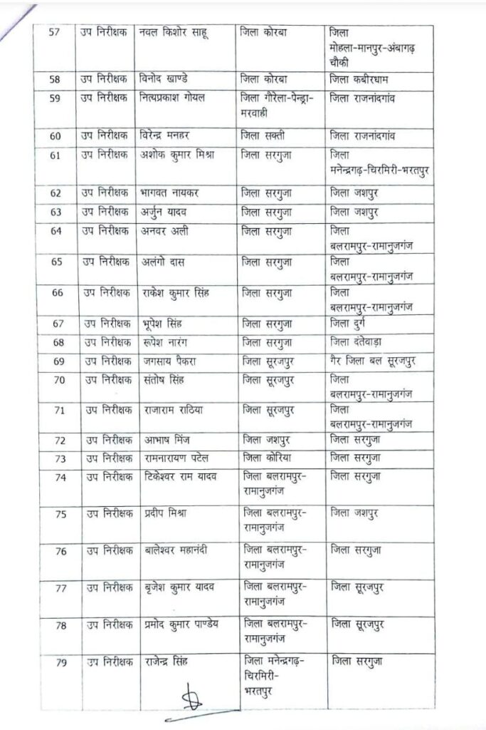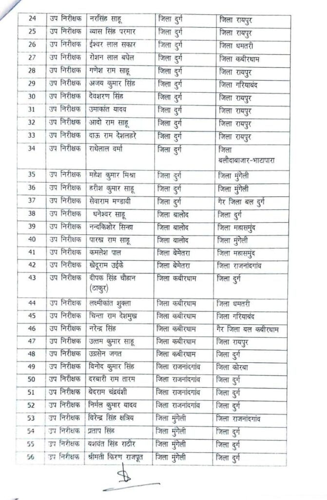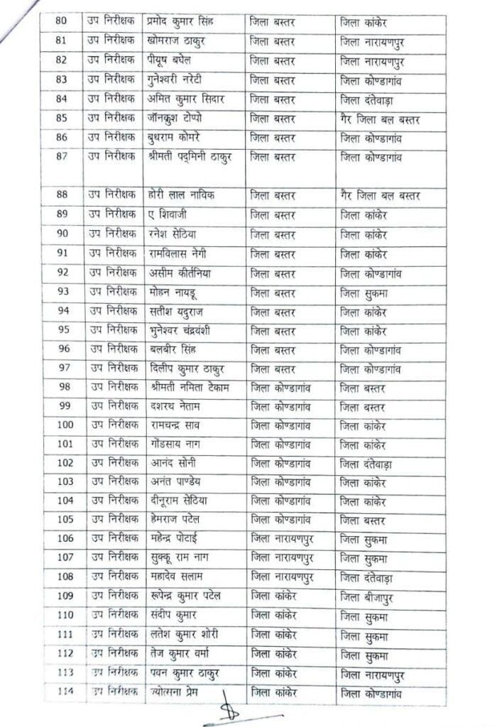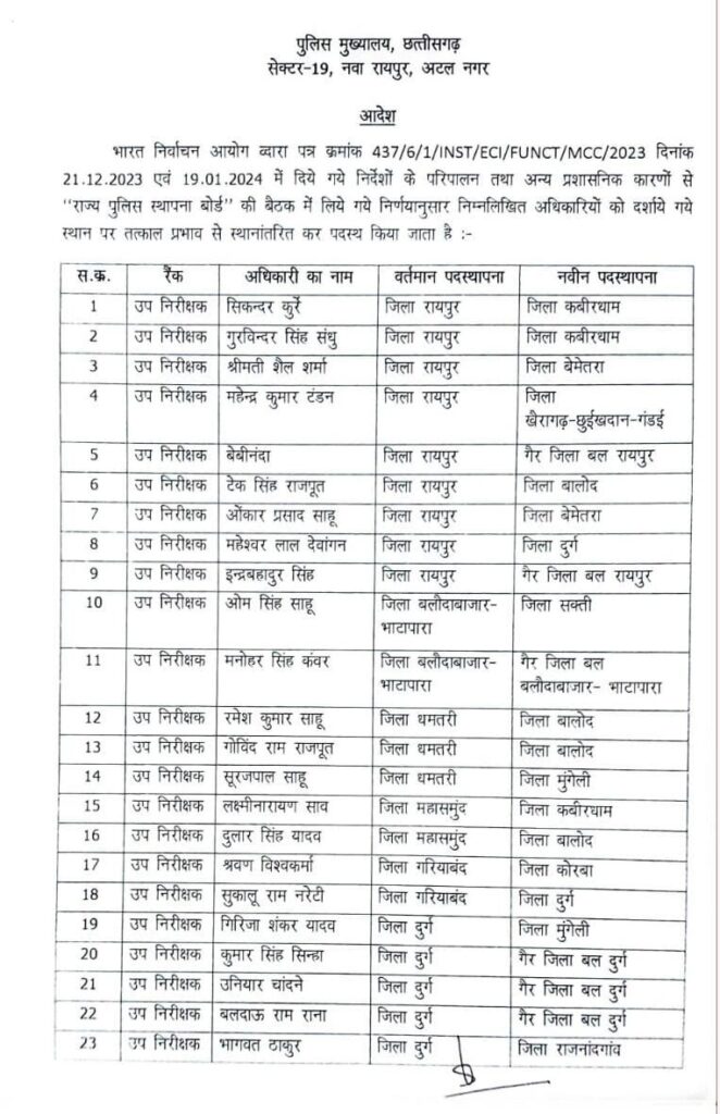 रायपुर/( शिखर दर्शन )// छत्तीसगढ़ पुलिस विभाग में बड़े पैमाने पर स्थानांतरण हुआ है । जिसका आदेश राज्य के पुलिस महानिदेशक अशोक जुनेजा ने जारी कर दिया है । आदेश में 137 उप निरीक्षकों का नाम शामिल है ।राज्य पुलिस स्थापना बोर्ड की बैठक में आवेदन पर विचार के बाद स्थानांतरण को मंजूरी दी गई है ।